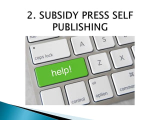 The document outlines the process and considerations for self-publishing, including hiring contractors for editing and design, creating distribution accounts, and ensuring quality standards. It emphasizes the importance of defining a mission and vision for the publishing program, vetting submissions, and maintaining a selective approach with a focus on bottom-line performance. Additionally, it highlights the author-subsidized business model and the varying quality and attention levels in traditional publishing practices.