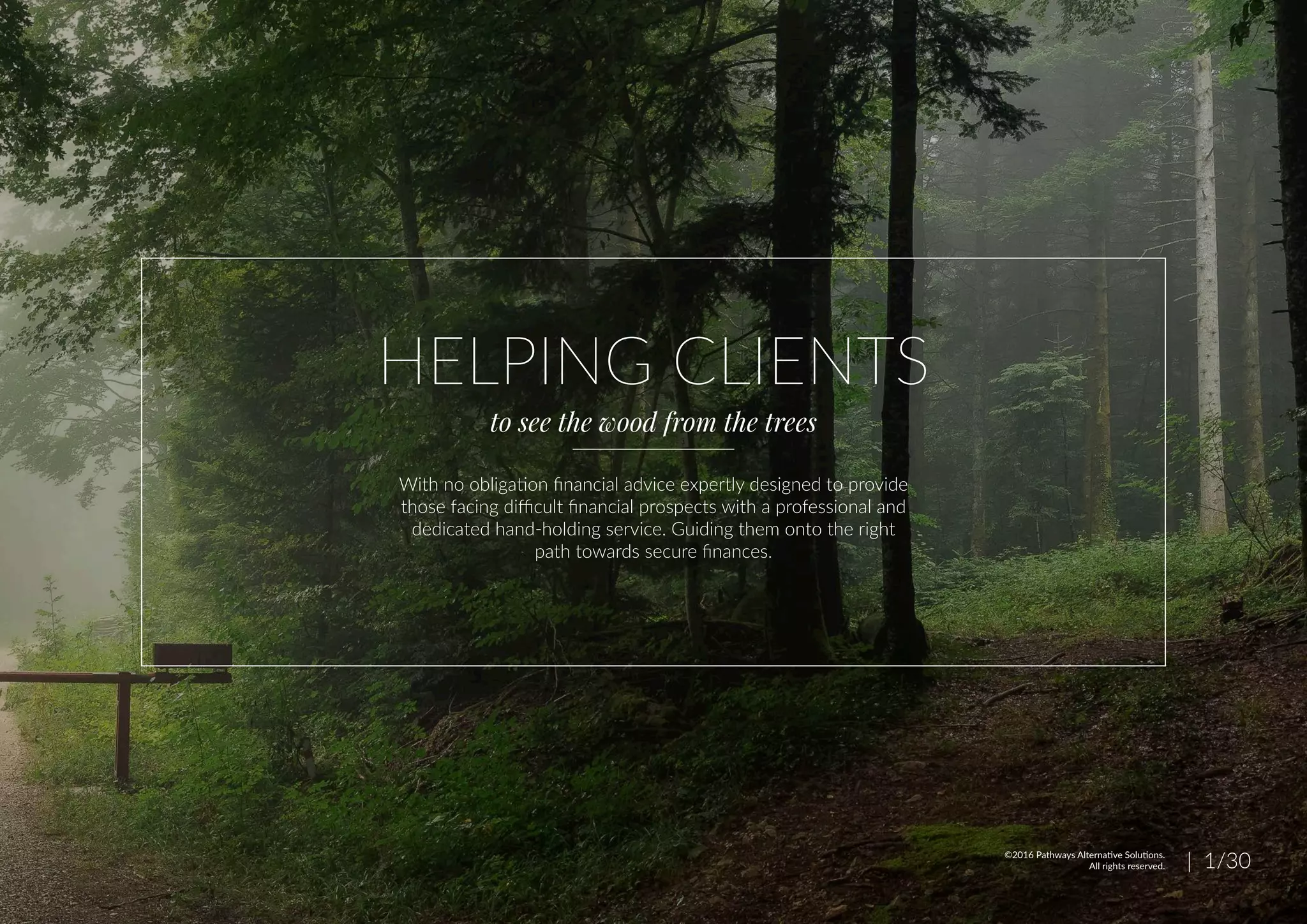 Pathways Alternative Solutions provides free no-obligation financial advice and solutions for clients facing difficult financial situations. They specialize in areas like insolvency, restructuring, and alternative funding options. Their team of experts works closely with each client to fully understand their unique circumstances and develop a customized plan to help guide them towards long-term financial security.