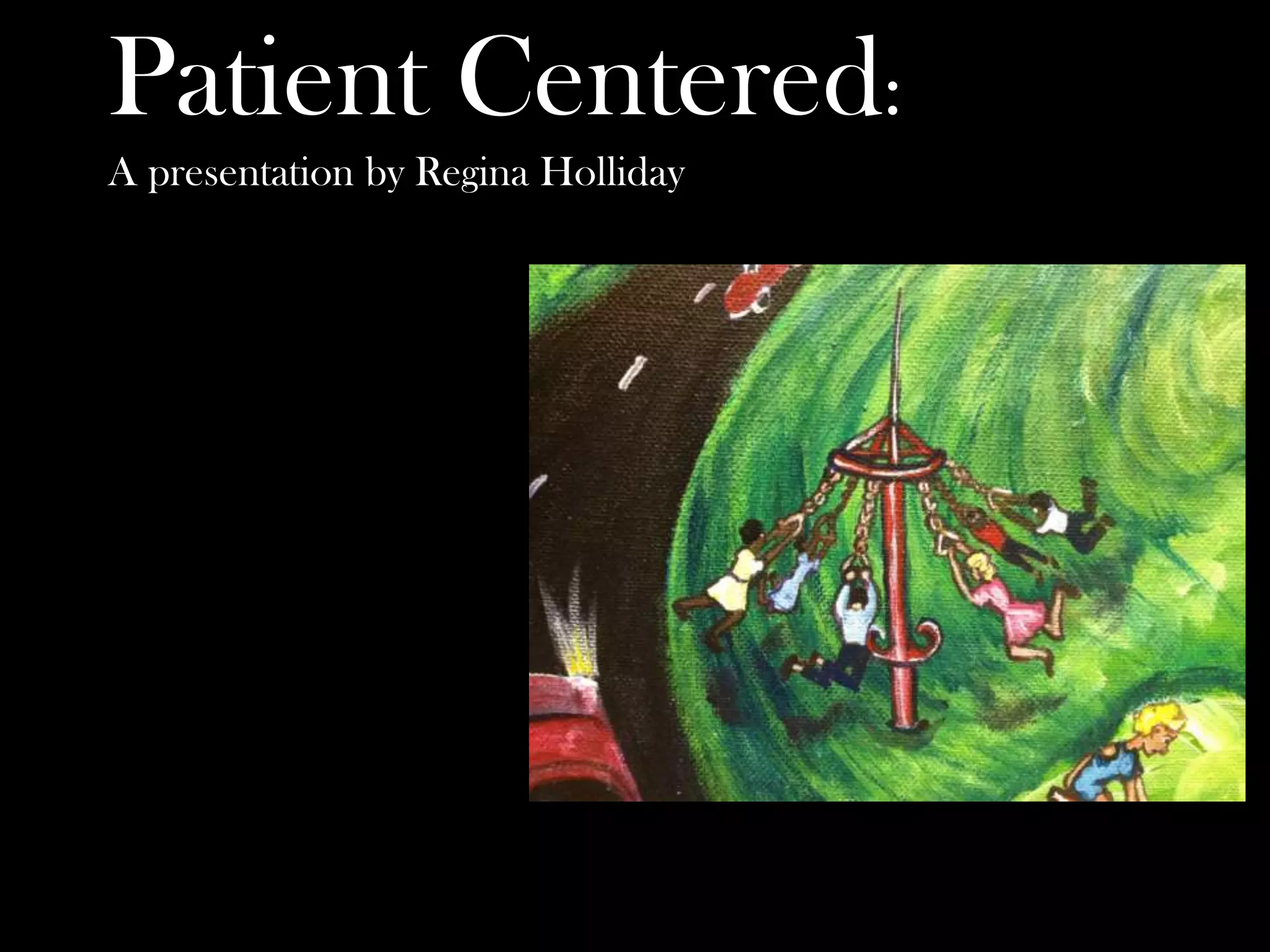 This document is a presentation by Regina Holliday about patient-centered care. It summarizes her experience advocating for her late husband Fred's medical care and access to his electronic medical record. This led Regina to become a patient advocate and create art to tell patients' stories. The presentation describes challenges faced obtaining Fred's records and navigating his cancer diagnosis. It highlights how social media helped connect Regina to others for support and information when the hospital could not provide answers.