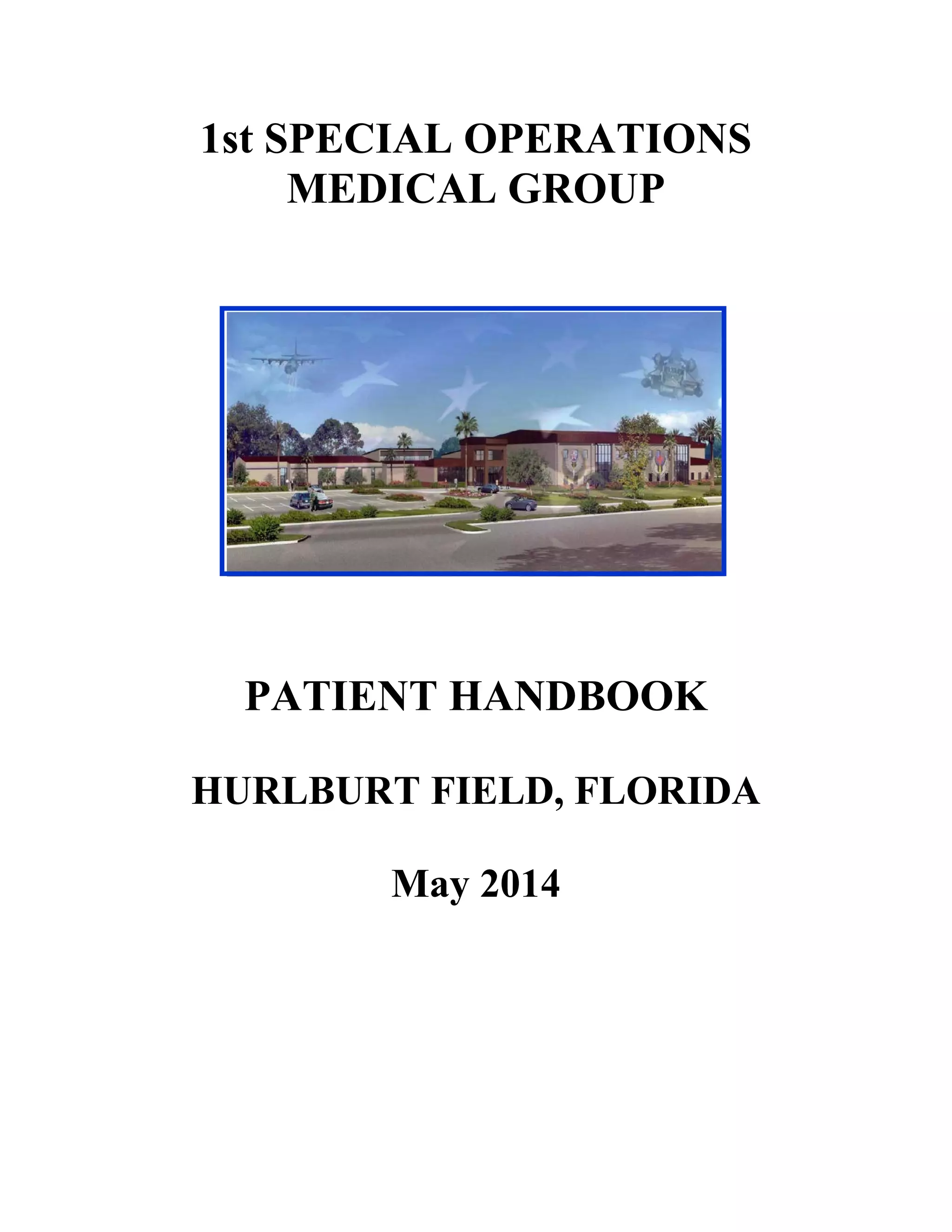 The document provides information about the services and policies of the 1st Special Operations Medical Group located at Hurlburt Field, Florida. It details the clinic's hours of operation, locations, emergency procedures, appointment scheduling, no-show policies, and available medical services such as family health, pediatrics, optometry, immunizations and more. Key services are the family health, pediatric, and flight medicine clinics that provide primary care to enrolled beneficiaries.