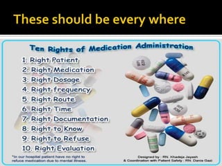 Patient safety aims to prevent harm caused by healthcare itself. While most medical care is delivered safely, errors still occur and patient safety has increasingly been recognized as an important global issue, though more work is needed to address it. Common causes of harm include individual errors, system issues, and environmental factors, and strategies like checklists and protocols seek to improve safety.