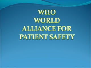4) WHO and its World Alliance for Patient Safety are working with countries to improve safety practices and reduce risks to patients worldwide.