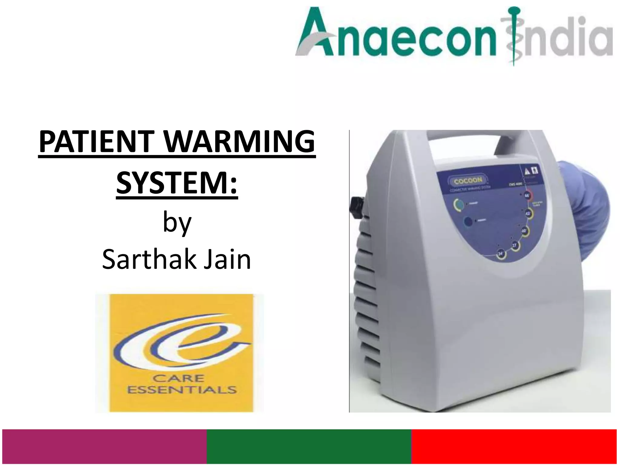 This document discusses patient warming systems used during anesthesia and surgery to prevent hypothermia. Induction of anesthesia can decrease core body temperature by over 1.5 degrees Celsius in the first hour. Forced air warming blankets are more effective at conductive warming than static blankets. Hypothermia can lead to complications like coagulation issues, increased oxygen consumption, cardiac issues, and prolonged hospital stays. Warming blankets are available for different body parts and surgeries, and new systems aim to rapidly induce heat transfer and prevent bacterial growth and burns.
