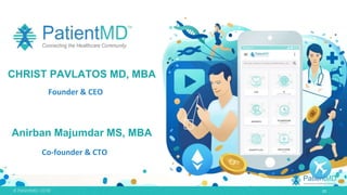 The document describes PatientMD, a mobile healthcare platform that aims to create an engaged community of patients, doctors, and businesses. The platform provides various services through mobile apps, including a personal health record, telemedicine, genetic testing, artificial intelligence, and a marketplace. It aims to empower patients by giving them access to their health data and information to help manage their care in a personalized, cost-effective manner.