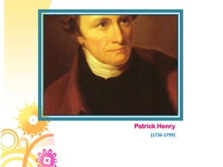 This document provides a summary of Patrick Henry's famous speech to the Virginia Convention on March 23, 1775 arguing in favor of mobilizing forces against the growing British military presence in the colonies. The summary outlines Henry's use of rhetorical techniques like repetition, improvisation, and rhetorical questioning to make a compelling case for war. It also briefly discusses the historical context of rising tensions between the colonies and Britain leading up to the American Revolution.