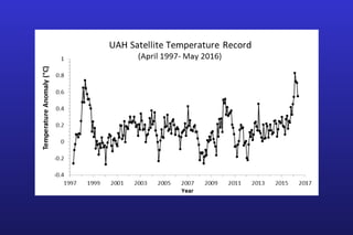 This document summarizes the key points of a presentation arguing that climate sensitivity to increased greenhouse gases is lower than estimated by previous climate models. It notes that climate models have overpredicted warming compared to actual temperature observations. It discusses the logarithmic relationship between carbon dioxide levels and temperature change, as well as evidence that climate sensitivity is on the lower end of estimates. The document concludes by arguing that concerns about extreme sea level rise are overblown based on comparisons to past interglacial periods when temperatures were higher than present.
