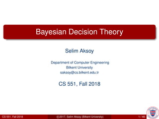 This document provides an overview of Bayesian decision theory. It begins by defining Bayesian decision theory as a statistical approach that quantifies the tradeoffs between decisions using probabilities and costs. It then discusses using Bayesian decision theory to classify fish by type based on observed features and probabilities. The document explains key Bayesian concepts like prior and posterior probabilities, conditional probabilities, discriminant functions, and how the Gaussian distribution relates to Bayesian classification. The overall summary is that Bayesian decision theory provides a framework for making optimal decisions under uncertainty by accounting for probabilities and costs associated with different outcomes.