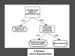 This document provides an overview of pattern classification and clustering algorithms. It defines key concepts like pattern recognition, supervised and unsupervised learning. For pattern classification, it discusses algorithms like decision trees, kernel estimation, K-nearest neighbors, linear discriminant analysis, quadratic discriminant analysis, naive Bayes classifier and artificial neural networks. It provides examples to illustrate decision tree classification and information gain calculation. For clustering, it mentions hierarchical, K-means and KPCA clustering algorithms. The document is a guide to pattern recognition models and algorithms for classification and clustering.