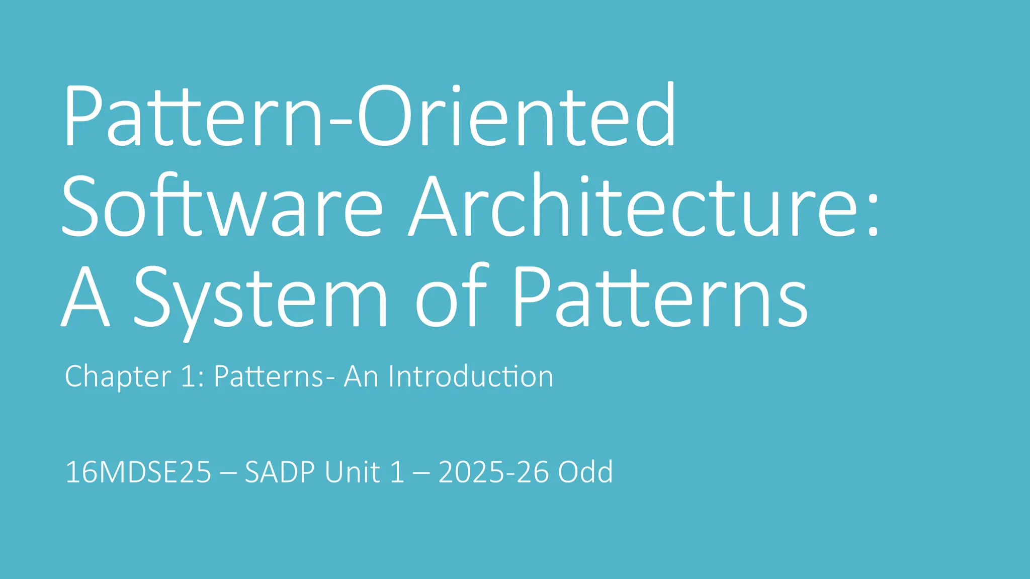 •Patterns and Software Architecture