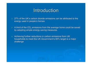 This document discusses laboratory tests performed to quantify the effectiveness of various options for improving the thermal performance of traditional windows. Options tested included heavy curtains, traditional and insulated shutters, modern and Victorian blinds, and secondary glazing. The tests measured the reduction in heat loss through the window glazing with each option compared to single glazing alone. Results showed that secondary glazing was the most effective at reducing heat loss, followed by insulated shutters and modern roller blinds with low-emissivity film.
