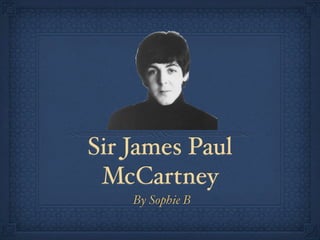 Paul McCartney was born in 1942 in Liverpool, UK. He met George Harrison in school and later John Lennon, forming the band The Beatles with Ringo Starr. The Beatles became hugely popular worldwide in the 1960s. After the band broke up in 1970, McCartney formed another band called Wings with his wife Linda and others. McCartney has had a prolific career as a solo artist and continues to perform and write new music.