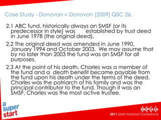 1. The document discusses a case study regarding a self-managed superannuation fund established by Charles for himself and his wife Isabelle.