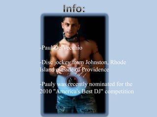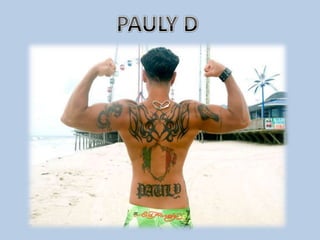 Pauly D is a disc jockey from Rhode Island who was nominated for "America's Best DJ" in 2010. He gets a haircut weekly from the same barber of 14 years and is a neat freak who makes his bed daily and gets manicures bi-weekly. Pauly D has several tattoos including a memorial cross and tombstone for his late friend Billy Iannotti that he got done at an ink studio in Fall River, Massachusetts.