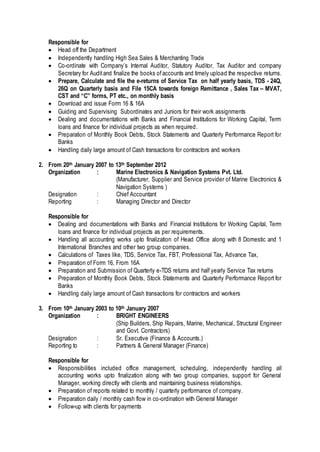 3. Their most recent role was as Accounts Officer at ASB Systems Pvt. Ltd. where they managed the accounts department and tax filings.