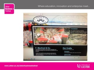 The document summarizes the Pavestone Centre project which offers work and leisure activities. It describes the social enterprise that produces traditional Irish crafts using local materials for the tourist market. The center aims to develop work skills and help clients enter employment or volunteering through a sheltered business. It discusses the rationale of viewing clients as people and reflecting the local area. The center has been successful in helping clients find jobs and training. It also notes the potential to replicate this model with other social enterprises catering to the tourism industry.