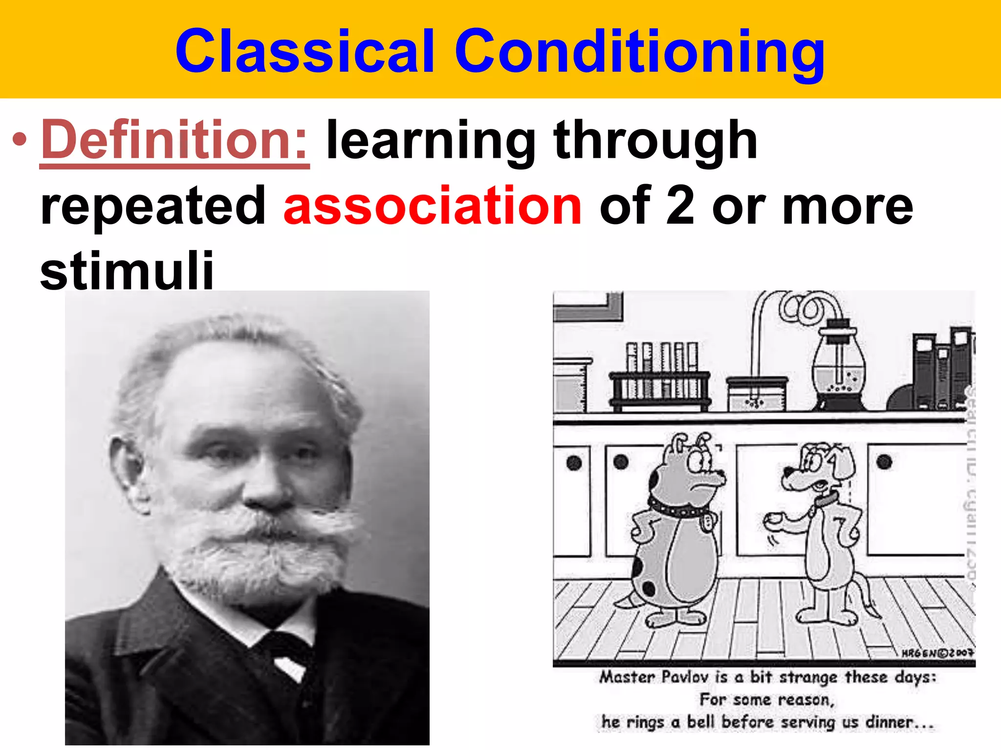 Pavlov's experiment on classical conditioning involved pairing a neutral stimulus like the sound of a bell with an unconditioned stimulus of food. Through repeated associations, the neutral stimulus elicited the same unconditioned response as the unconditioned stimulus, resulting in the neutral stimulus becoming a conditioned stimulus that provoked a conditioned response like salivation in anticipation of food. The key elements of classical conditioning are the neutral stimulus, unconditioned stimulus, conditioned stimulus, unconditioned response, and conditioned response.