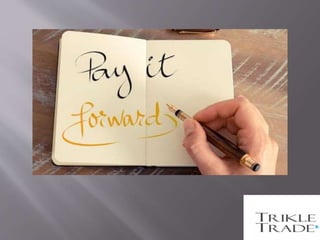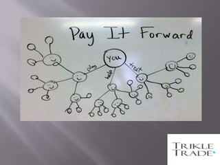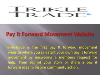 Trikletrade is a unique platform enabling users to initiate pay-it-forward movements by responding to requests for help. Users can share their stories or ideas to encourage community participation. More information can be found on their website at https://www.trikletrade.com.