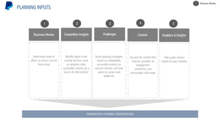 PayPal aims to strengthen its position as an omni-channel payment solution for both online and offline merchants. It has made several acquisitions totaling over $2 billion to enhance its payment processing capabilities globally. However, PayPal faces competition from established digital wallets like Apple Pay and Google Pay, as well as payment platforms like Square that are well-known to small businesses. To better serve small businesses, PayPal needs to improve merchant education and highlight its security, flexibility, and value compared to alternatives in the evolving digital payments landscape.