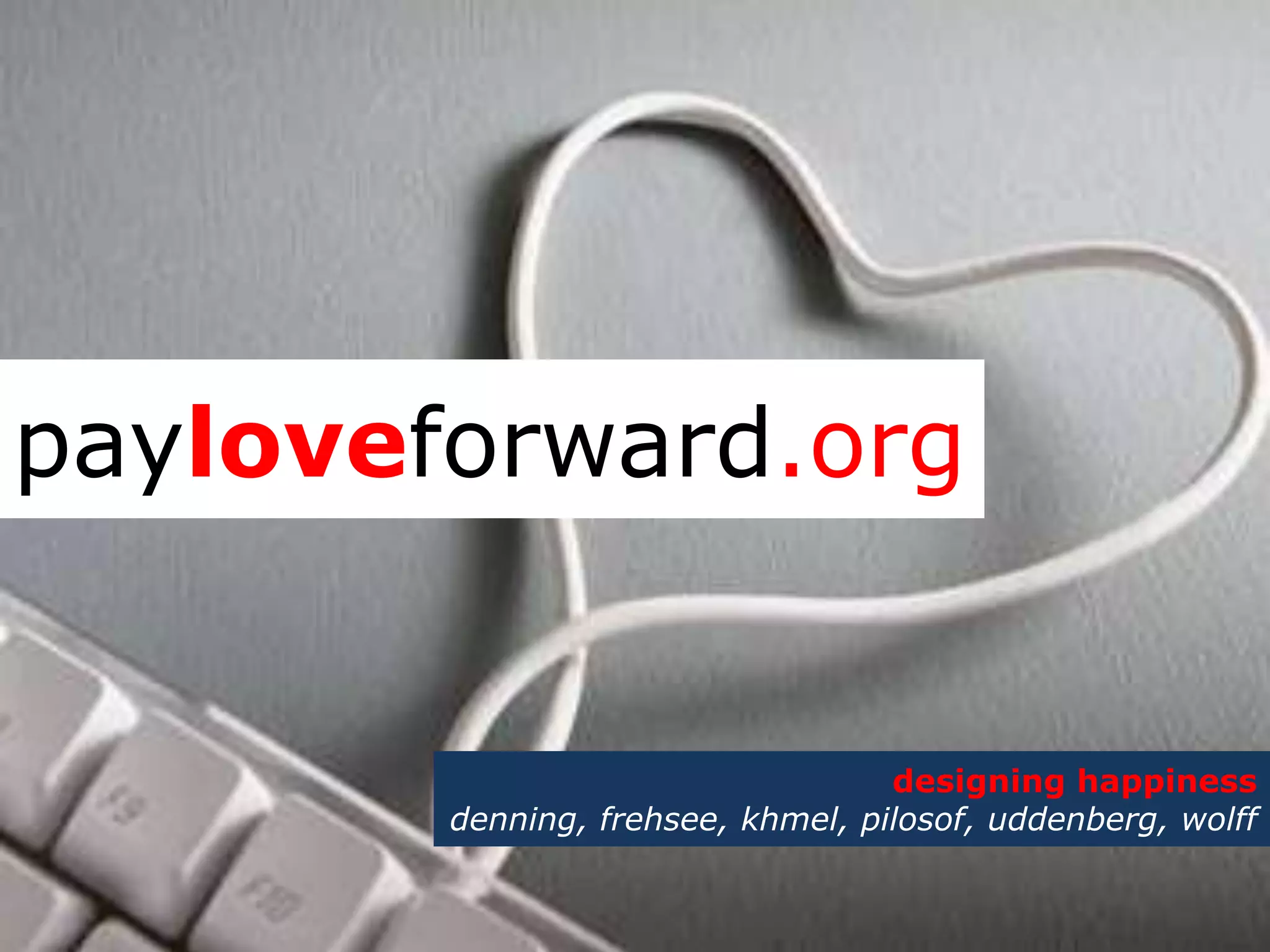 The document discusses a new alternative dating site called payloveforward.org that uses a network effect and empowers matchmakers to help daters find love in an efficient manner. It promotes the site by stating that employees, matchmakers, and daters are all happy with the service and that the company is committed to helping additional friends find love before the year ends.