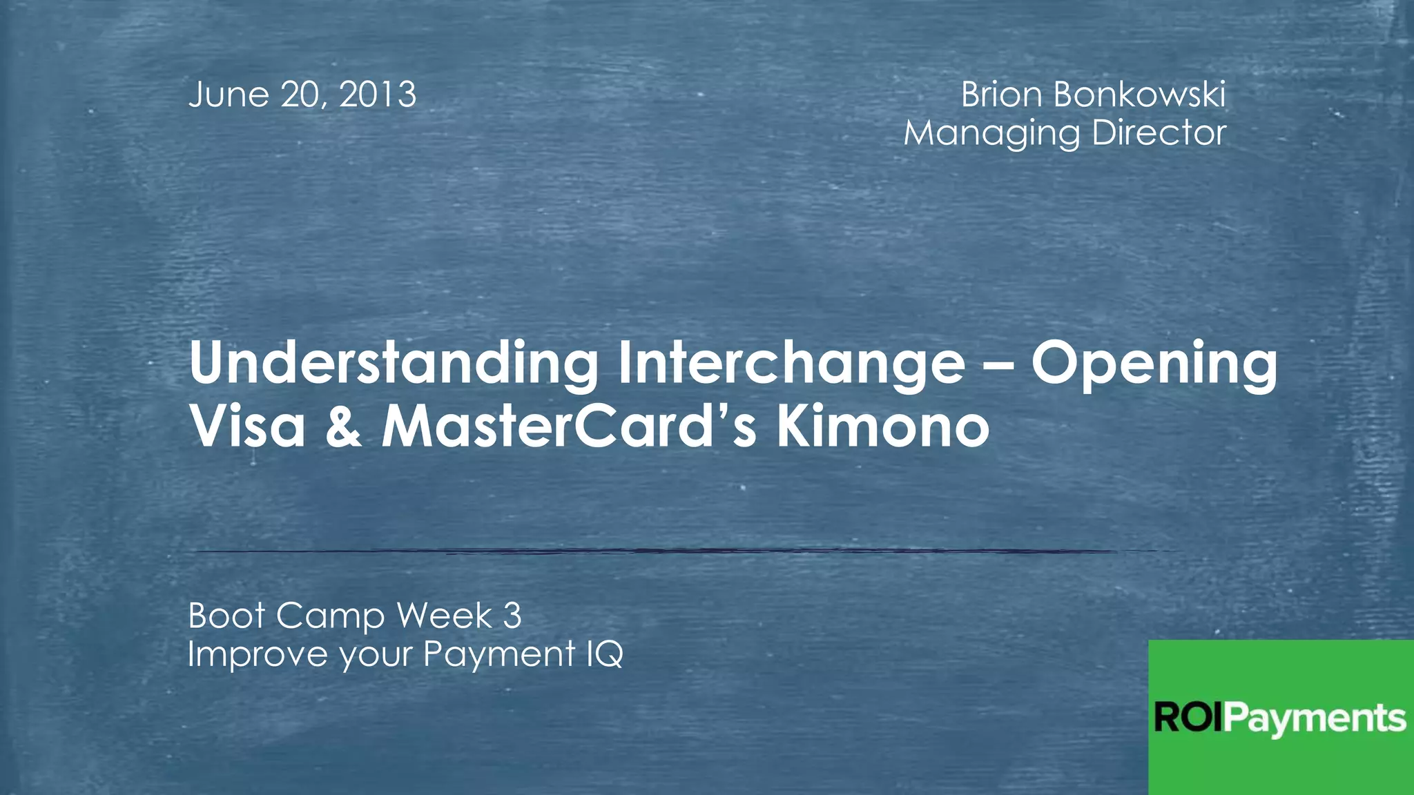 The document outlines a boot camp presentation on improving payment IQ, focusing on understanding interchange and its complexities, particularly in the U.S. It discusses the roles of various stakeholders in the payment ecosystem, interchange fees by region, and strategies for optimizing payments to lower costs. The session emphasizes the importance of comprehensive knowledge in navigating the rapidly evolving payment landscape.