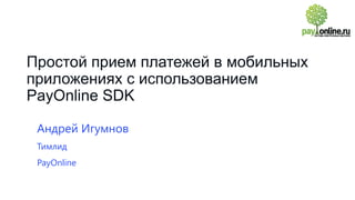 Документ описывает процесс приема платежей в мобильных приложениях с использованием SDK Payonline, включая аспекты интернет-эквайринга и обеспечения безопасности транзакций. Основное внимание уделяется использованию 3D-Secure и различным функциям SDK, а также планам по расширению платформ и языков программирования. Приложение «Добрые люди» служит примером данного подхода.