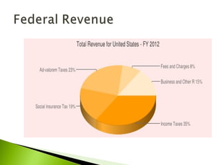 Gross pay is the total amount an employee earns before taxes are deducted. Employers are required to deduct federal withholding tax, social security tax, and Medicare tax from employees' paychecks. Social security tax pays for retirement benefits and Medicare tax pays for health insurance. The amount of federal withholding tax deducted is determined using tax tables that consider the employee's marital status, number of exemptions claimed, and pay frequency.