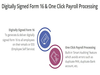 Ascent Payroll by Eilisys Technologies is a comprehensive payroll management software designed to facilitate efficient payroll processing for companies. It features an income tax calculator, flexi reimbursements, and expat grossing up tax among other robust tools for quick payroll calculations. The software also includes one-click processing, digitally signed form 16, and bulk settlement capabilities.