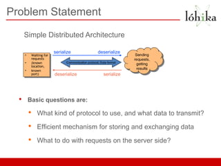 The document compares three data serialization protocols: Protocol Buffers (protobuf), Apache Thrift, and Avro, discussing their design goals, efficiency, ease of use, and performance. It highlights each protocol's strengths, weaknesses, and typical use cases, emphasizing Protocol Buffers for its speed and third-party support, Thrift for its extensive language support and RPC implementation, and Avro for its schema-based system and integration with Hadoop. The author concludes that the choice of protocol depends on specific application requirements and programming language support.