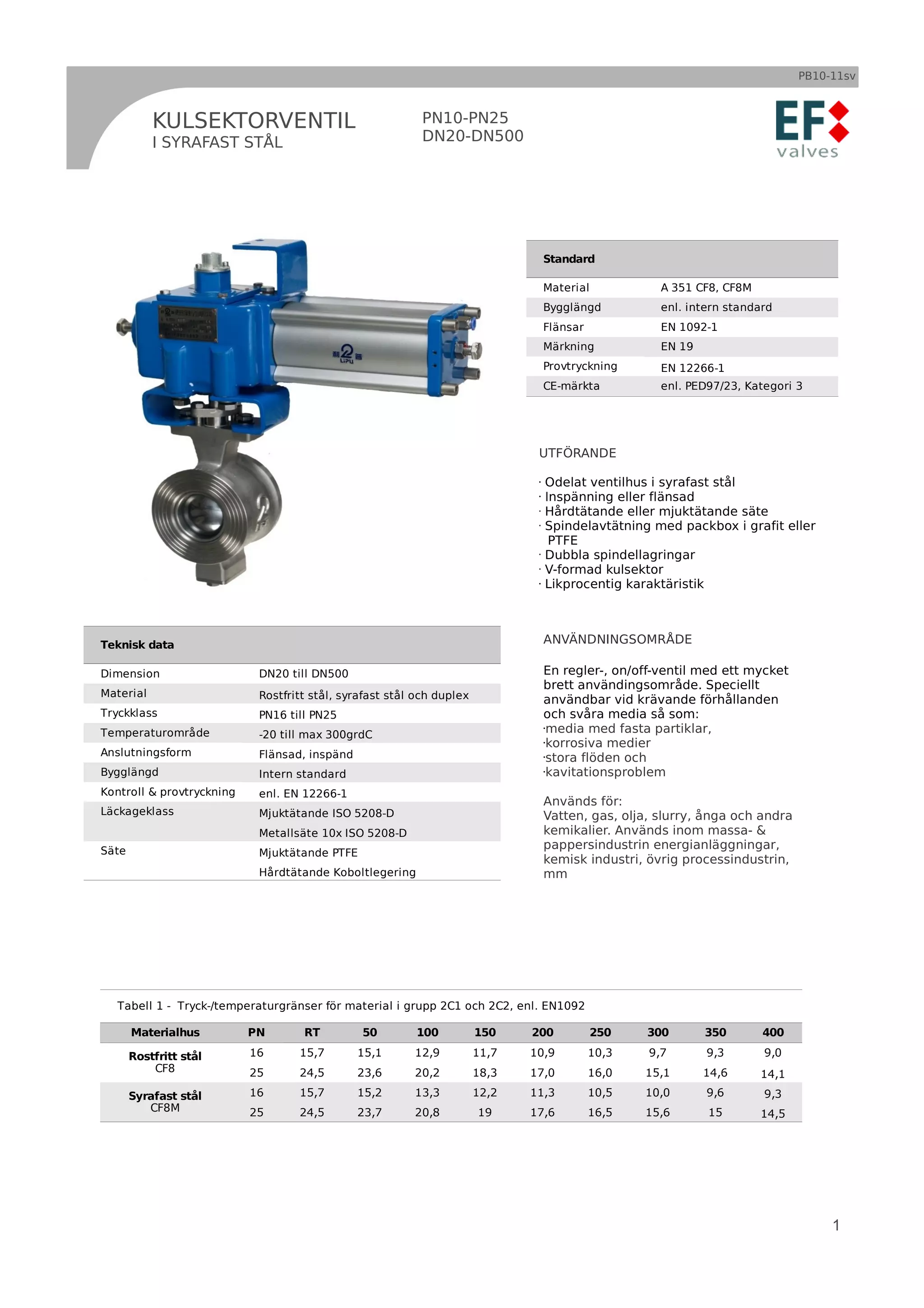 Pos Detalj CF8, materialgrupp 2C1 CF8M, materialgrupp 2C2