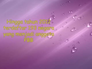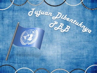 1. PBB didirikan pada tahun 1945 untuk menggantikan Liga Bangsa-Bangsa dan mewujudkan perdamaian dunia.