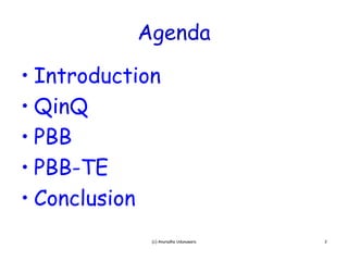 PBB-TE builds on Ethernet and PBB to enable carrier-grade transport of Ethernet services with traffic engineering capabilities like protected virtual circuits. It provides secure customer demarcation, large customer service scalability through unique identifiers, and single-ended provisioning. PBB-TE can be deployed alongside regular PBB in a network and provide protected transport of services while PBB is used for other services, all on the same infrastructure.