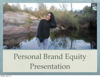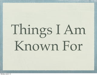 This document appears to be a student's presentation about developing their personal brand and reflecting on their academic year. The presentation includes sections titled "Things I Am Known For", "What I Plan To Be Known For", "Some Things I've Learned This Year", and samples of the student's work in various subjects. It also reflects on relationships, grades, activities, and goals for self-improvement over the coming school year.
