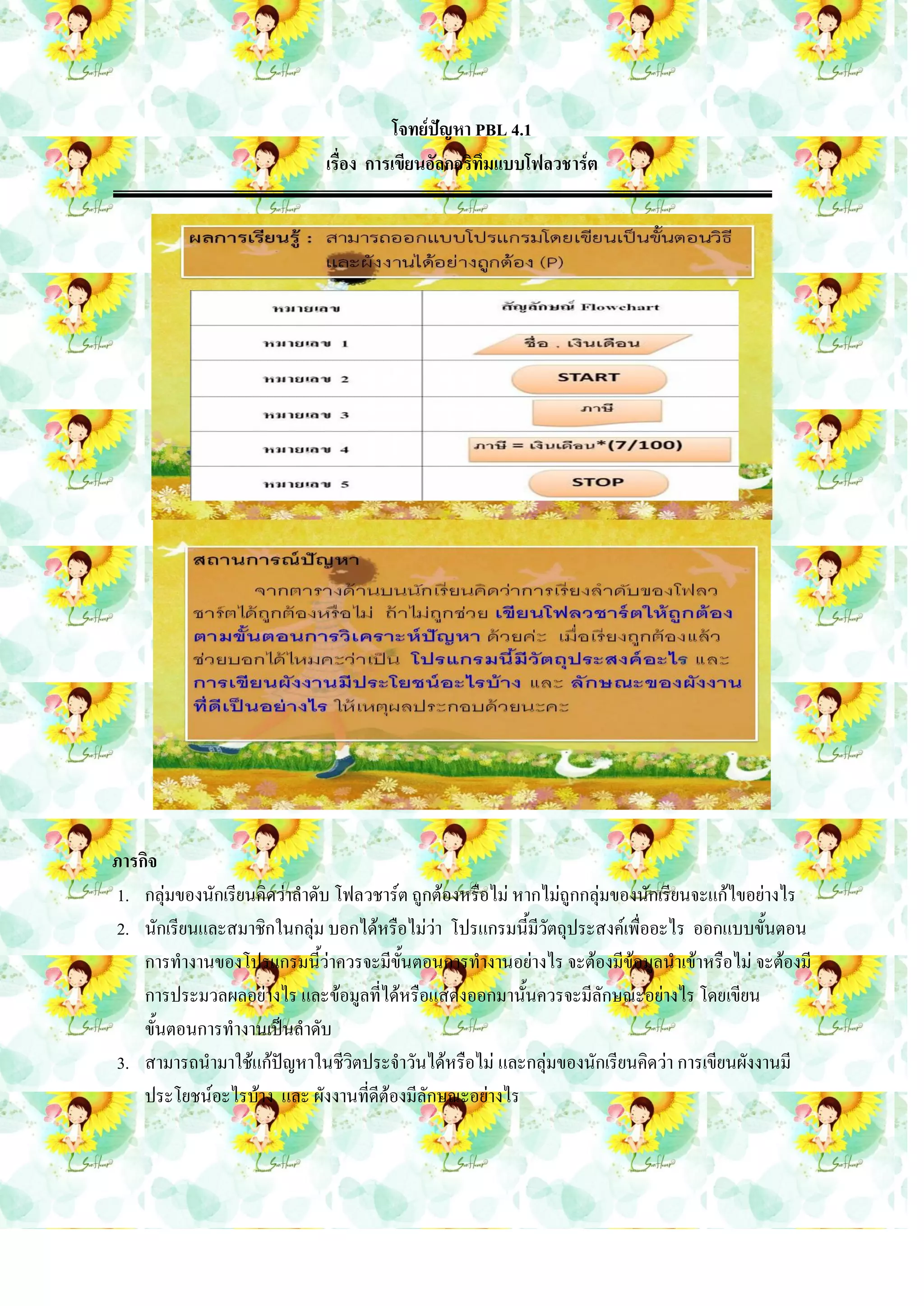 โจทย์ปัญหา Pbl 4.1 เรื่อง การเขียนอัลกอริทึมแบบโฟลวชาร์ต