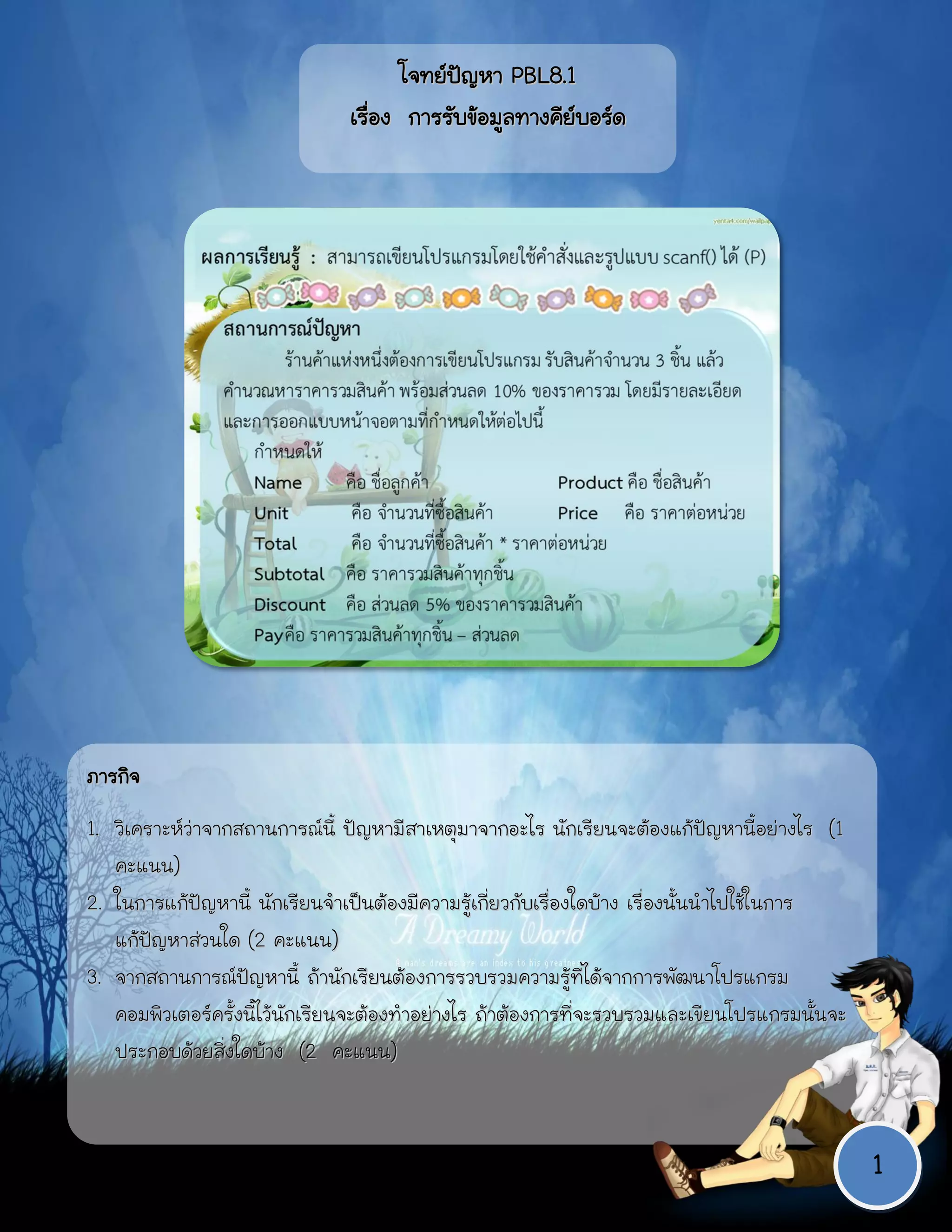 โจทย์ปัญหา Pbl 8.1เรื่อง การรับข้อมู]ทางคีย์บอร์ด