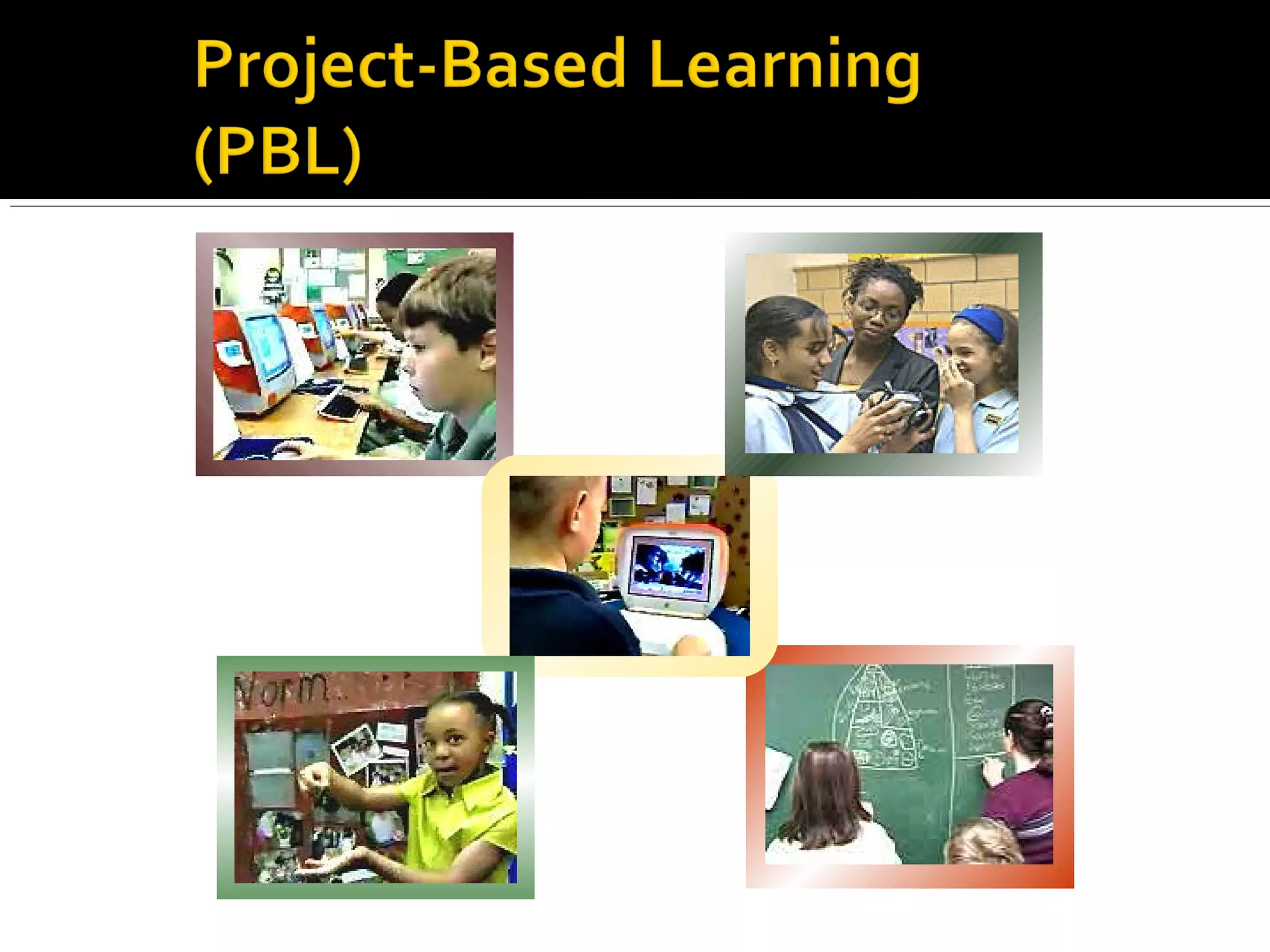 The document discusses project-based learning (PBL). It defines PBL as being curriculum-focused and standards-based, involving hands-on, real-world problem solving. Some key aspects of PBL covered include: having an essential question to guide the project; planning standards, activities and timelines; facilitating the process and providing mentorship; using authentic assessments such as rubrics; and reflecting on lessons learned. The document also provides tips for implementing PBL, such as beginning with an engaging activity, focusing on a few standards, setting clear deadlines and concluding projects with impact.