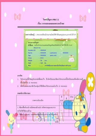 โจทย์ปัญหา Pbl 7.2เรื่อง การแสดงผลออกทางหน้าจอ