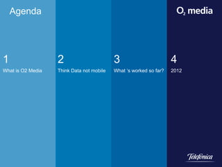(1) O2 Media has successfully used permission-based mobile marketing to reach over 6 million customers, surpassing the reach of some traditional media channels. (2) Location-based messages have generated high recall rates of 60-90% and increased sales and store visits for brands. (3) Video MMS campaigns have also achieved high recall, with 84% recall for a Lynx message and 77% interest in receiving more video ads. (4) Case studies demonstrated increased sales, such as a Starbucks offer that drove 14% redemption and £110,000 in incremental sales. (5) The presentation argues that mobile should be a core part of marketing strategies given its connectivity and ability to amplify other channels.