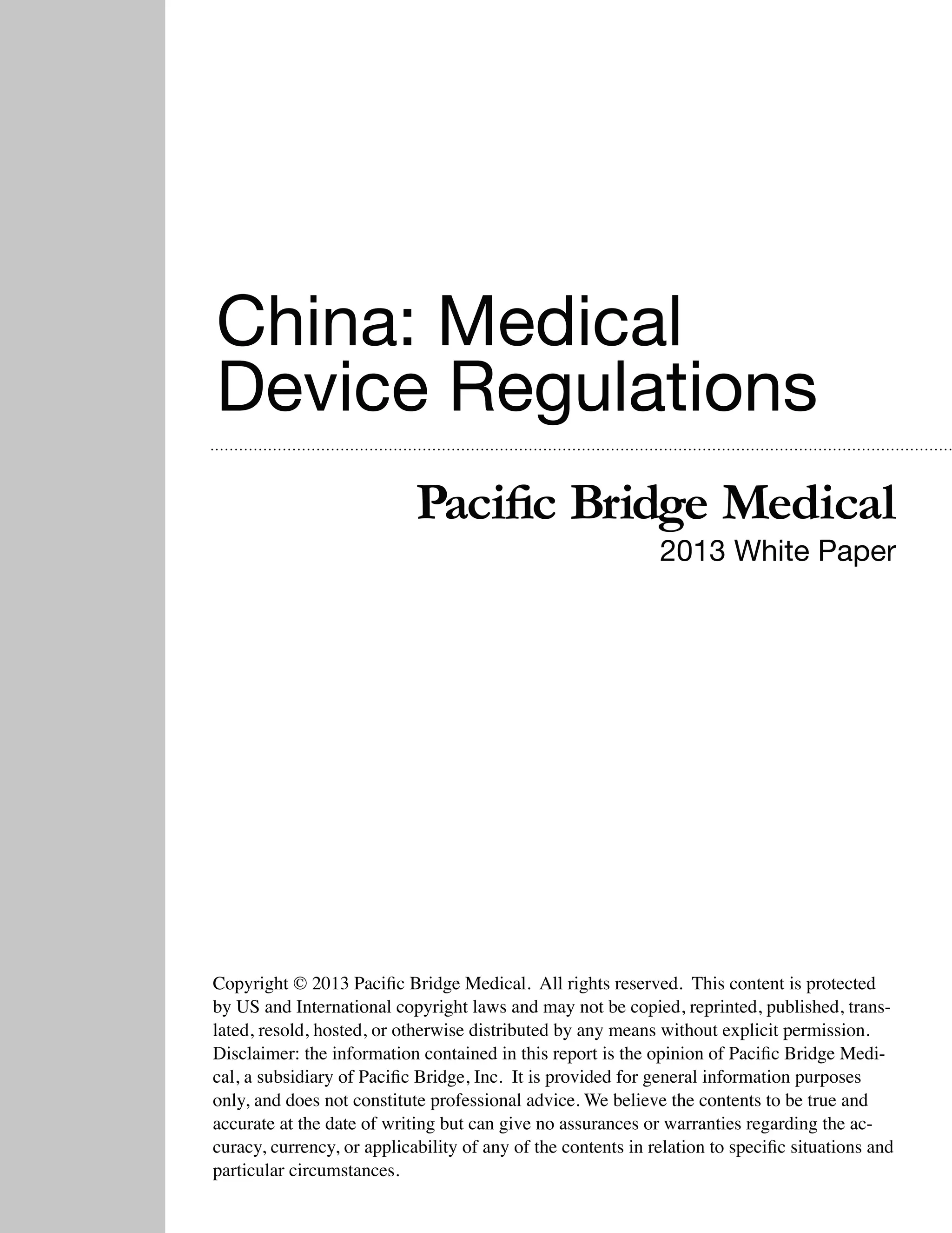 The document outlines the regulatory landscape for medical devices in China, emphasizing that it is the seventh largest market globally and offers details on the roles of key regulatory authorities such as the State Food and Drug Administration (SFDA). It highlights the classifications of medical devices, the registration process, and the requirements for legal and technical documentation required for compliance with Chinese regulations. Additionally, it discusses the importance of product standards, adverse event reporting, and the potential need for clinical trials for products not yet registered in China.