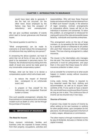 This chapter introduces various aspects of insurance, emphasizing its importance, functions, and classification into life and general insurance. It discusses how insurance works by pooling risks and presenting a strategy to help individuals and businesses financially recover from unforeseen events. The historical development of insurance and the roles of insurance agents are also addressed, highlighting the vital part they play in providing financial security.