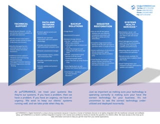 pcFORMANCE provides various technical support and security services for businesses including on-site and remote support, data backup solutions, disaster recovery, and systems monitoring. Their services help dental offices optimize their computer systems and get the most from their dental applications. Customers praise pcFORMANCE for quickly resolving issues and improving how their systems run.