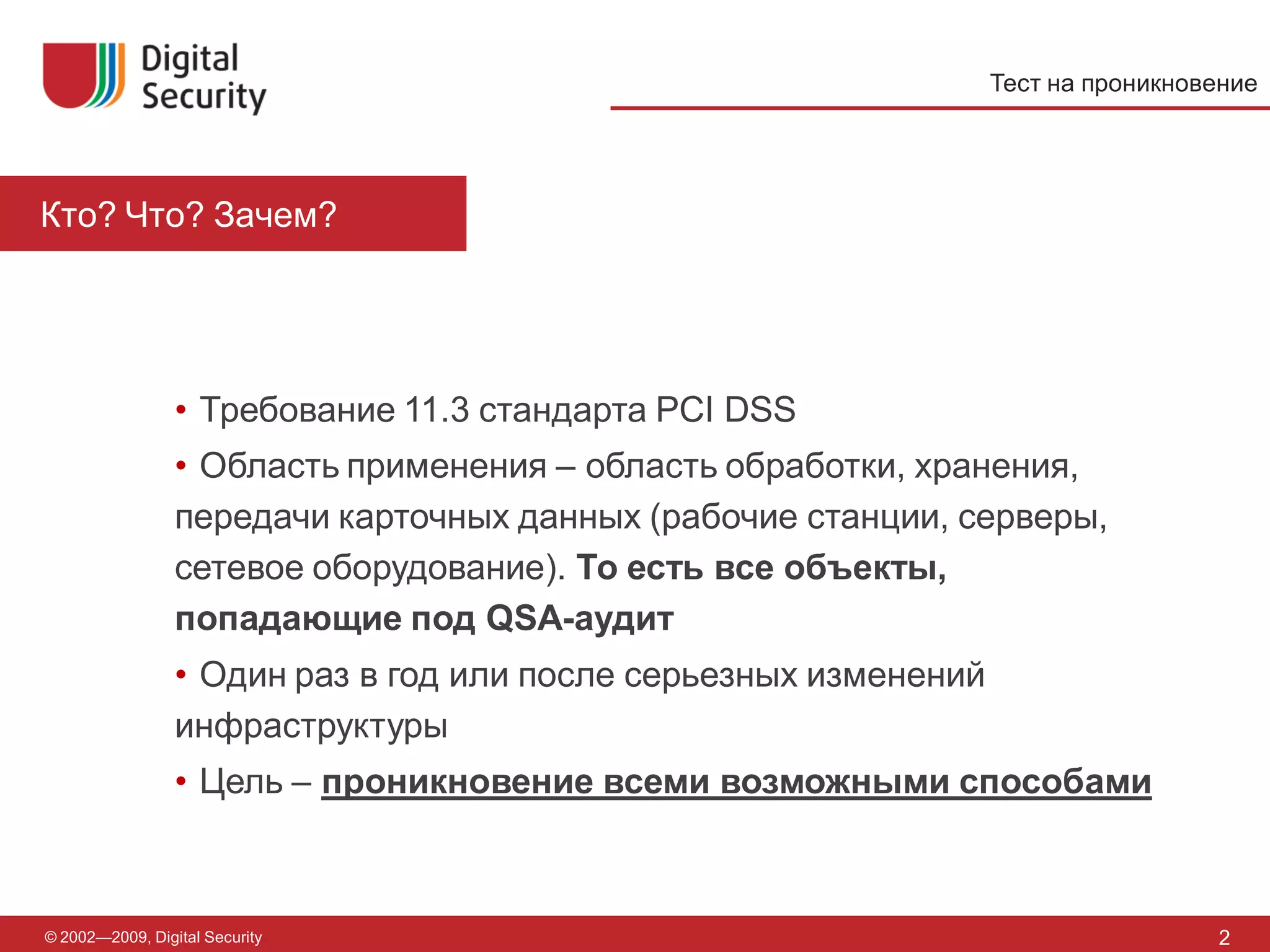 Документ обсуждает основные заблуждения относительно тестов на проникновение в контексте требований PCI DSS, акцентируя внимание на отличиях между тестированием и сканированием. Рассматриваются цели тестов на проникновение, методы и возможные недостатки защиты данных, включая примеры уязвимостей. Успешность теста определяется только qsa-аудитором, при этом важность квалификации исполнителей и соблюдения стандартов является критичной.