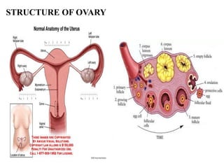 Polycystic Ovarian Syndrome (PCOS) is a hormonal disorder that affects how the ovaries work. The ovaries produce estrogen and progesterone, which help regulate the menstrual cycle and support pregnancy. PCOS causes the ovaries to develop small cysts and high levels of androgens, leading to irregular or absent periods, excess hair growth, acne, and difficulty getting pregnant. It is diagnosed through physical exams, blood tests, and ultrasounds. Treatments include lifestyle changes like weight loss, oral contraceptives, anti-androgen medications, fertility drugs, and metformin to reduce insulin levels and symptoms.