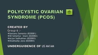 Polycystic ovary syndrome (PCOS) is a disorder affecting 5-10% of women of reproductive age, characterized by abnormal ovarian function and elevated androgen levels. It has various types linked to causes such as insulin resistance and genetic factors, and can lead to complications like infertility and cardiovascular disease. Diagnosis involves physical exams and tests, and treatment focuses on managing symptoms through lifestyle changes and medications.