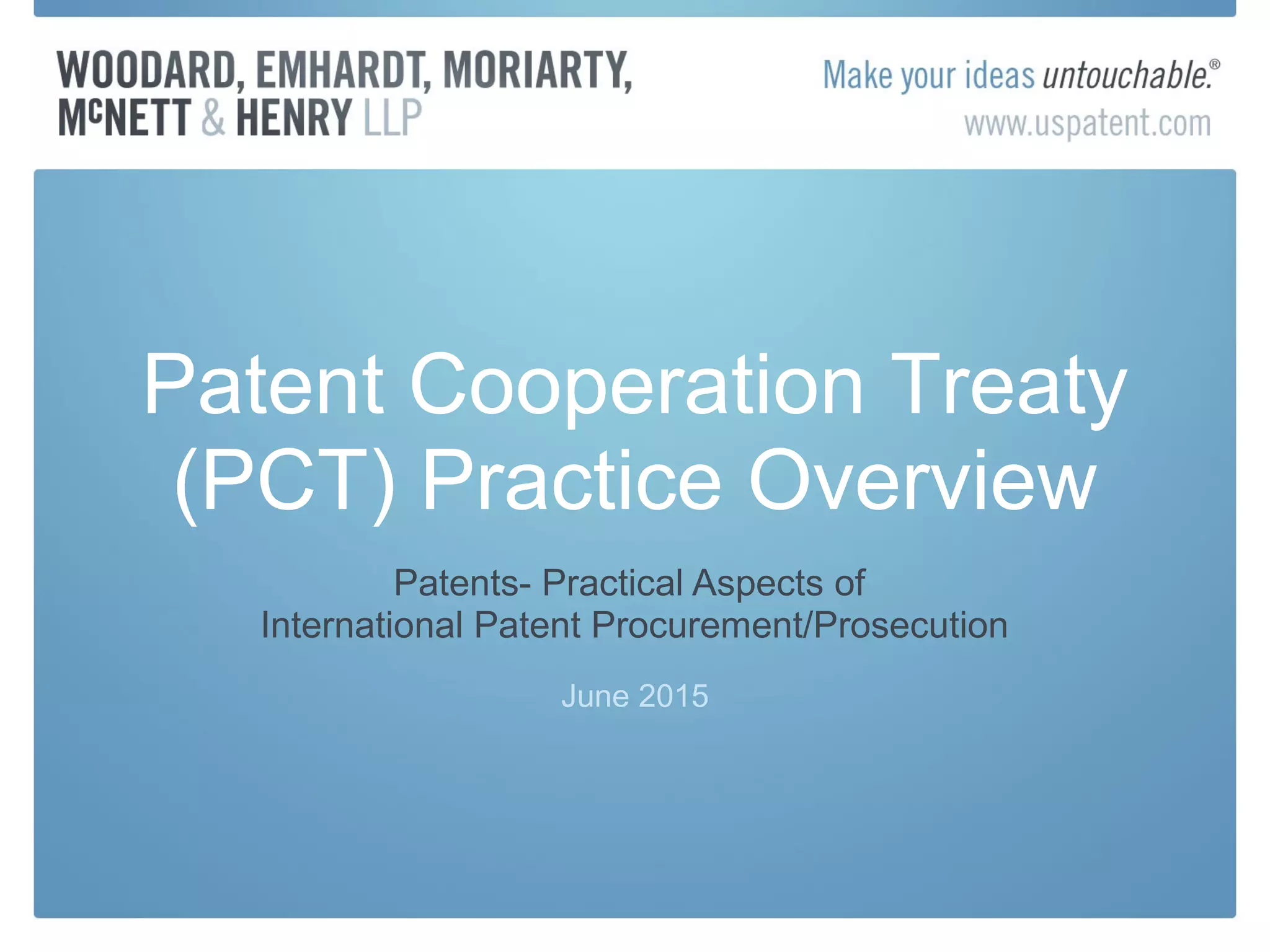 The document discusses options for international patent filing, including directly filing in foreign countries, filing under the Paris Convention, or filing under the Patent Cooperation Treaty (PCT). It notes key differences between the Paris Convention and PCT, such as deadlines and costs. The document also provides an overview of procedures and paperwork involved in PCT filing, including International Search Reports, Written Opinions, and International Preliminary Reports on Patentability. It highlights considerations for choosing between filing under Chapter I or II of the PCT.