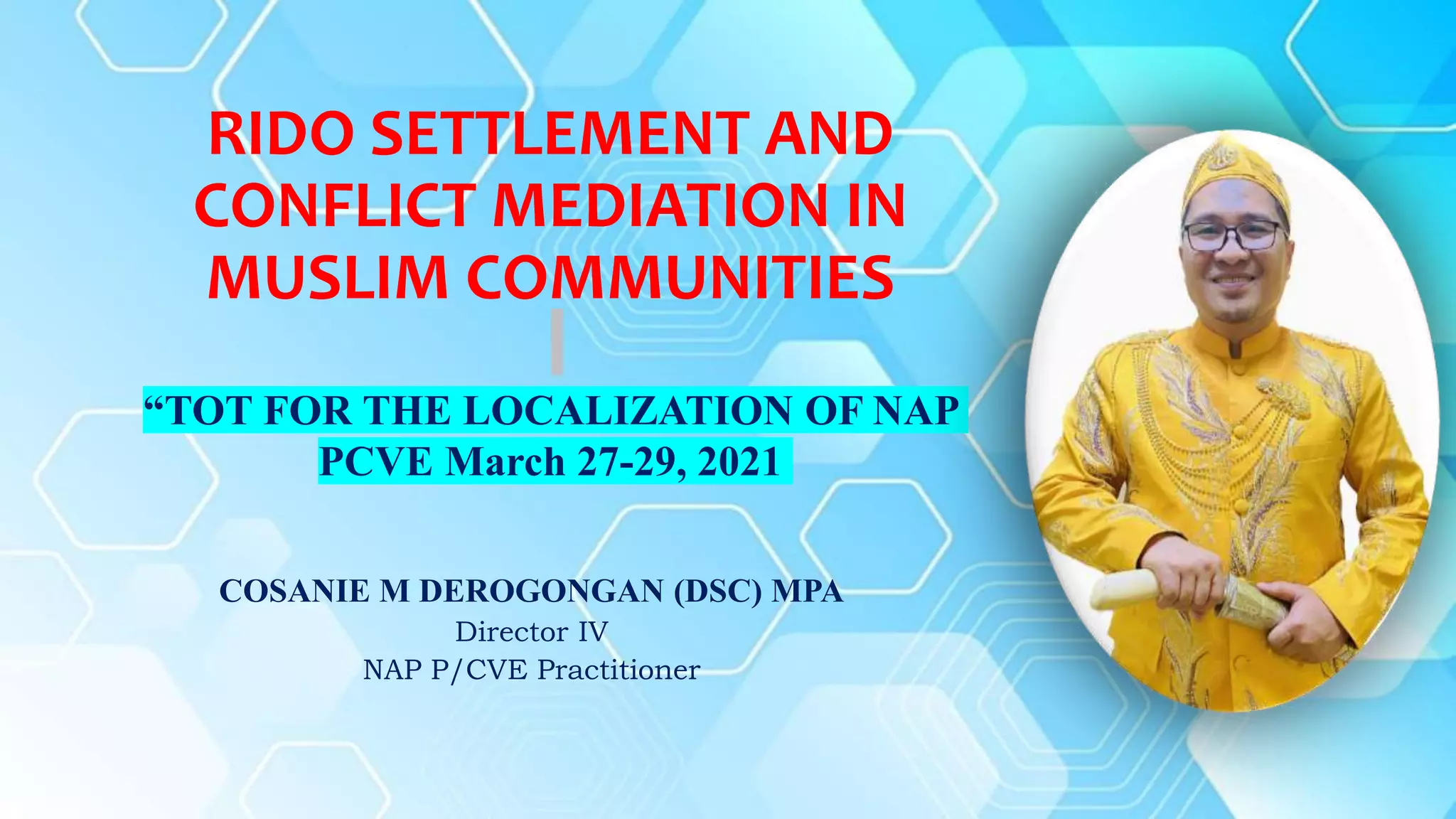 Family feuds known as "rido" have plagued Muslim communities in the Philippines for decades, resulting in cycles of violence that claim many lives and undermine development. Traditional mediation approaches have had limited success in resolving rido disputes. The document discusses the causes and consequences of rido, and examines traditional and Islamic law-based approaches to mediation. It recommends institutionalizing the roles of traditional and religious leaders in mediation, and replicating successful community-led strategies like those used in ARMM to strengthen local conflict resolution mechanisms and build peace in affected areas. Left unresolved, rido disputes can contribute to conditions conducive to violent extremism, threatening national security.