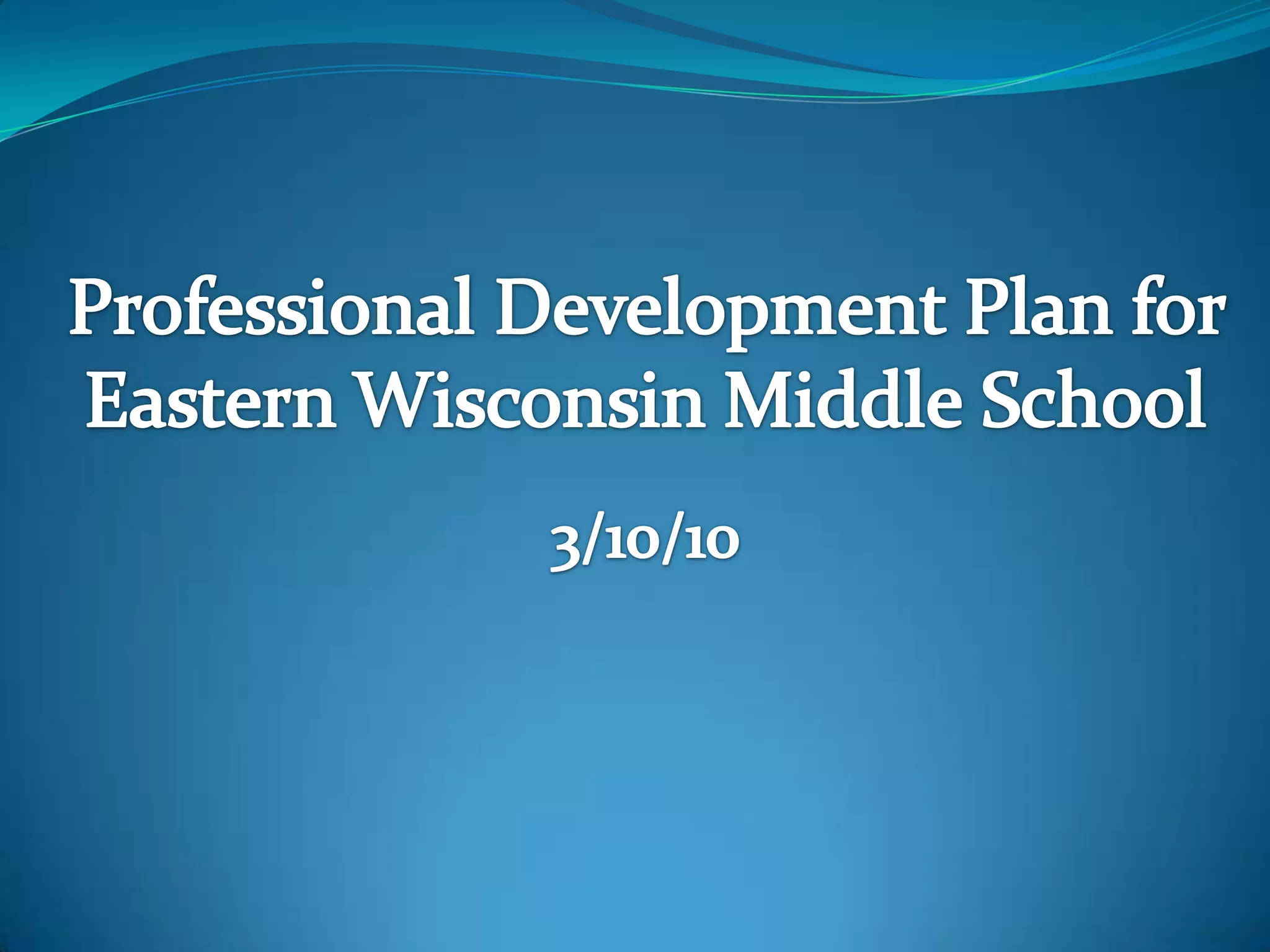 This document proposes a professional development plan for Eastern Wisconsin Middle School to address low scores in design process, evaluation process, and reading levels. The plan aims to create collaborative staff development opportunities focused on improving reading scores and staff assessment through committees using the Measure of Academic Progress (MAP) and Read 180 programs. MAP is an adaptive, computer-based student assessment that provides convenient, efficient, cost-effective and effective testing. The proposal also includes a timeline for MAP and Read 180 implementation and associated professional development workshops on strategic comprehension, vocabulary, using data, and developing independent readers.