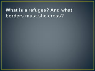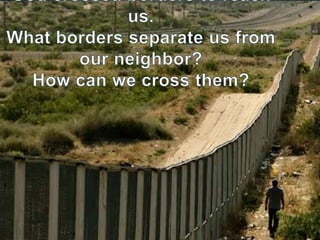 This document discusses the biblical stories of Jesus and Moses as examples of crossing borders to escape oppression. It notes how Joseph, Mary and Jesus fled to Egypt to escape King Herod's decree to kill children, drawing parallels to the story of Moses and the Egyptian Pharaoh's decree. The document also references the large number of unaccompanied Central American minors apprehended at the US border and calls Christians to have the humble, servant-like mind of Christ in how we treat migrants.