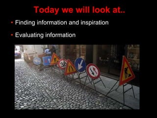 This document provides information and guidance on finding and evaluating information for academic research. It introduces several library resources available at the university such as Summon, which allows users to search all print and electronic materials, and Google Scholar, a tool for finding scholarly literature. It emphasizes exploring the resources provided and not relying solely on Google. The document also outlines techniques for searching databases more effectively using operators and limits. Finally, it discusses important criteria for evaluating information sources, including authority, relevance, intent, objectivity, and currency.