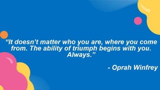 The document discusses personal development and factors that influence career choice for adolescents. It outlines four factors: psychological, social, economic, and cultural. The psychological factors include interests, aptitudes, and intelligence. Social factors cover personality, attitudes, and lifestyle. Economic factors relate to family background and financial aspects. Cultural factors refer to community values and family influence. The document emphasizes that personal development is important for self-understanding, goal-setting, effective time management, and building relationships to support career decision making.