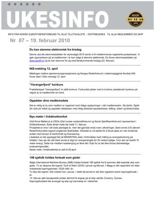 INFOFRA NORSK SJØOFFISERSFORBUND TIL ALLE TILLITSVALGTE - DISTRIBUERES TIL ALLE MEDLEMMER OG SKIP